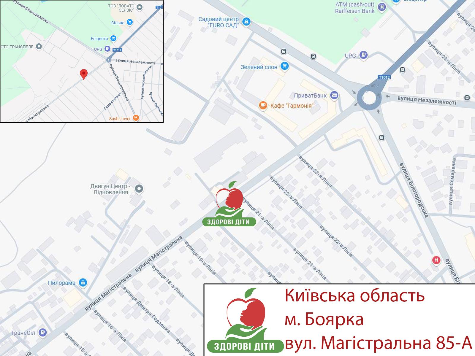 Україна, Київська область, м. Боярка, вул. Магістральна, 85-А.